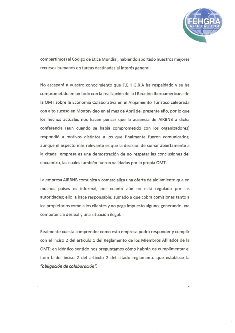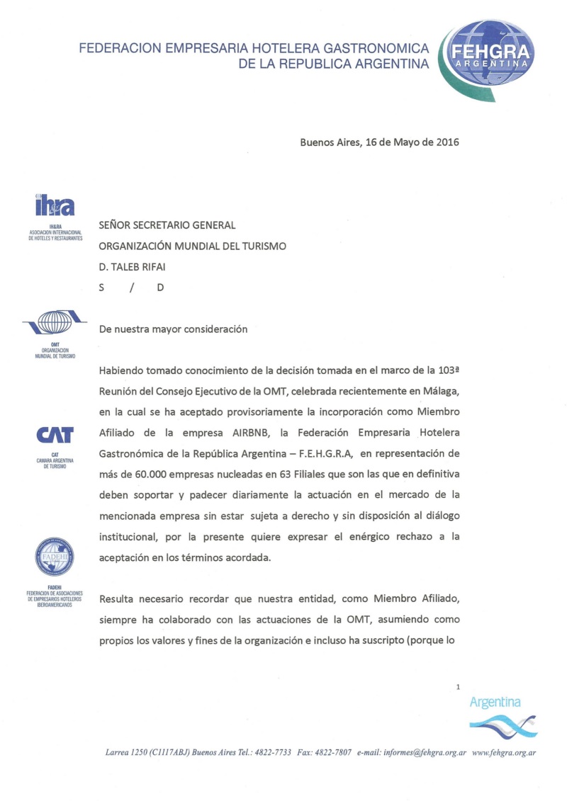 En relación al tema que convulsionó al ámbito empresarial del turismo internacional, la aceptación de Airbnb como miembro de la OMT, Organización Mundial del Turismo, sabíamos que como lo dijimos en el editorial de esta jornada, existe un notorio malestar a lo largo y ancho del planeta. Una de las primeras reacciones, es ésta: