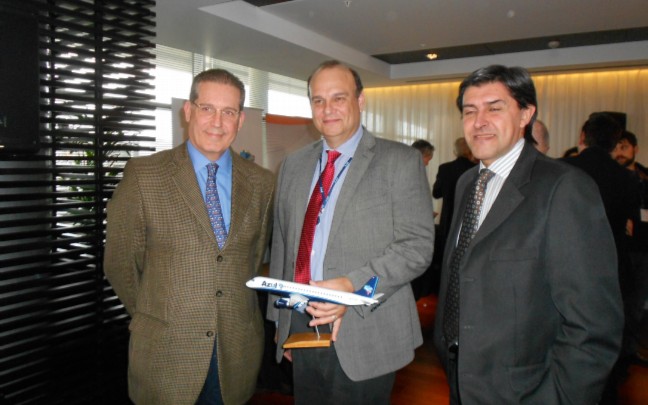 Hadil Fontes da Rocha Vianna, Embajador de Brasil: Carlos Pellegrino, Director de Azul; Fernando Cattivelli, Presidente de la Cámara de Comercio Uruguayo Brasileño.