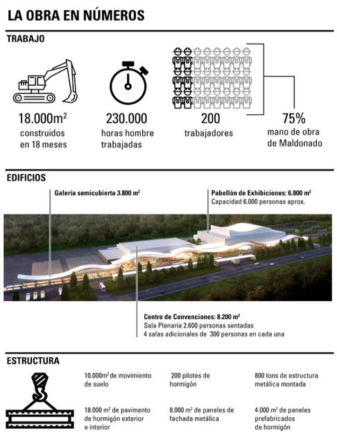 Se trabajaron 230.000 horas hombre con un pico máximo de ocupación de 200 trabajadores, de los cuales el 75% son residentes de Maldonado.
