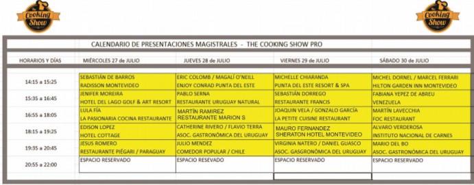 Asimismo en el marco de EXPO HOTEL se llevará a cabo THE COOKING SHOW PRO, un evento dentro del evento, dirigido a los protagonistas de la gastronomía nacional y regional, donde reconocidos profesionales del sector, brindarán su conocimiento y realizarán demostraciones frente a un público especializado. Actividades especiales, brigadas de renombrados chefs, grandes academias y empresas del medio, desplegarán su talento y experiencia.