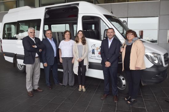 La camioneta donada es una Mercedes Benz 515 a estrenar con capacidad para trasladar a ocho niños. El vehículo está especialmente acondicionado con una entrada con rampa hidráulica en la parte trasera, que facilita el ingreso con sillas de rueda.