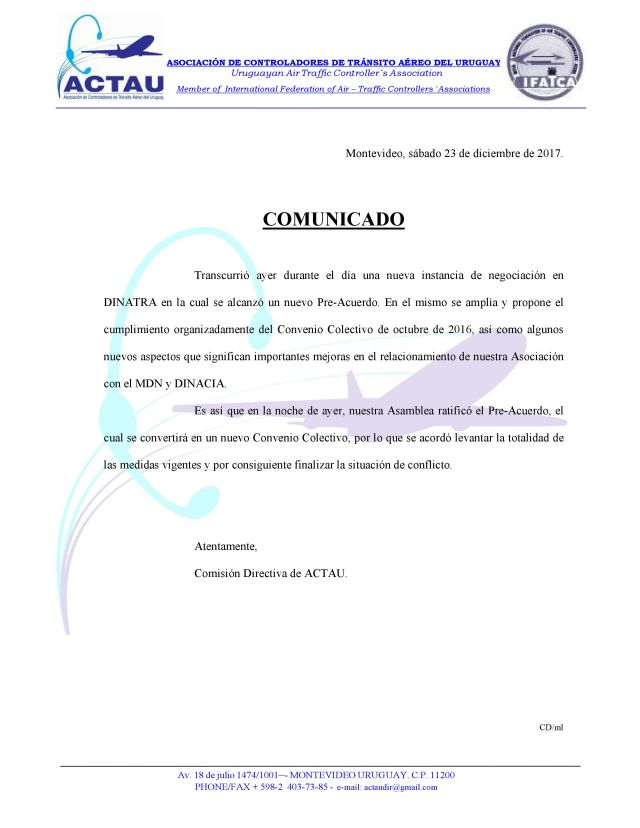 Por lo tanto, en la Asamblea realizada la noche del 22 se ratificó dicho Pre-Acuerdo, el cual se convertirá en un nuevo Convenio Colectivo, por lo que se acordó levantar la totalidad de las medidas vigentes y por consiguiente finalizar la situación de conflicto.