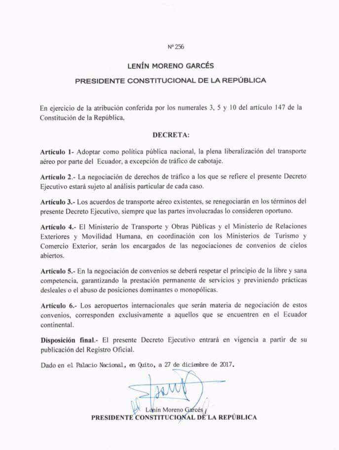 El decreto publicado en el portal oficial de la Presidencia, permitirá que se lleven a cabo acuerdos bilaterales de transporte aéreo civil para la liberación de ese mercado.