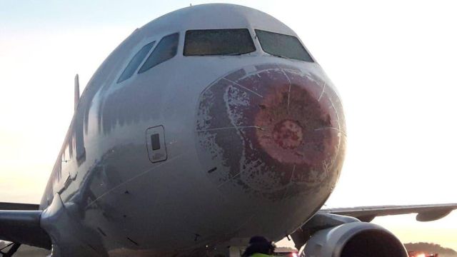 Debido a estos daños, el avión tuvo que aterrizar de emergencia en el aeropuerto de Ezeiza. Afortunadamente no hubo heridos.