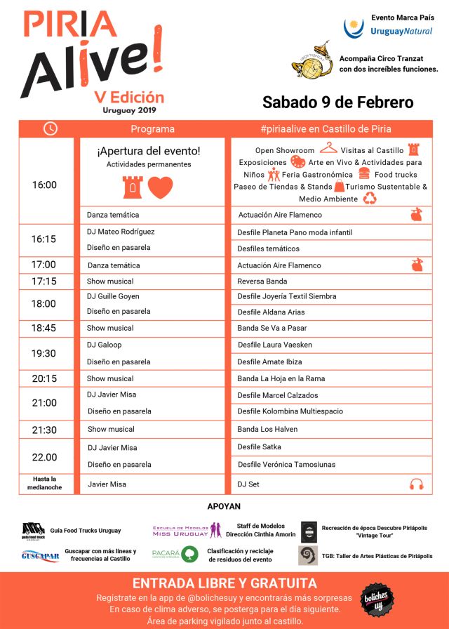 Este sábado entre las 16 y 24 horas tendrá lugar la quinta edición de Piria Alive!, la cual se realizará en el mágico entorno del Castillo Piria, que fuera hogar del fundador de la ciudad de Piriápolis. En esta oportunidad, a la ya tradicional presentación de diseñadores, artesanos y música, se agrega una importante presencia gastronómica. Presentamos la primicia del programa completo. La entrada es LIBRE Y GRATUITA.