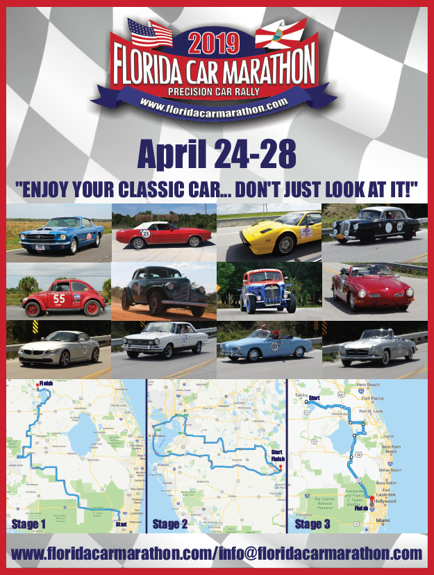 Florida Car Marathon 500es una combinación de turismo a cielo abierto disfrutando las bondades del clima de la Florida cuyo promedio de temperatura al año es de 28ºC, en la que se manejan autos último modelo convertibles y/o vehículos clásicos y/o motocicletas de última generación, todo esto con apoyo logístico e idioma, acompañado por profesionales residentes que aconsejarán a los participantes.