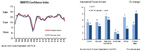 Hasta ahora, los impulsores de estos resultados han sido una economía fuerte, viajes aéreos asequibles, una mayor conectividad aérea y una mayor facilitación de visas. Sin embargo, los indicadores económicos más débiles, la incertidumbre prolongada sobre el Brexit, las tensiones comerciales y tecnológicas y los crecientes desafíos geopolíticos, han comenzado a afectar la confianza de las empresas y los consumidores, como se refleja en un Índice de Confianza de la OMT más cauteloso.