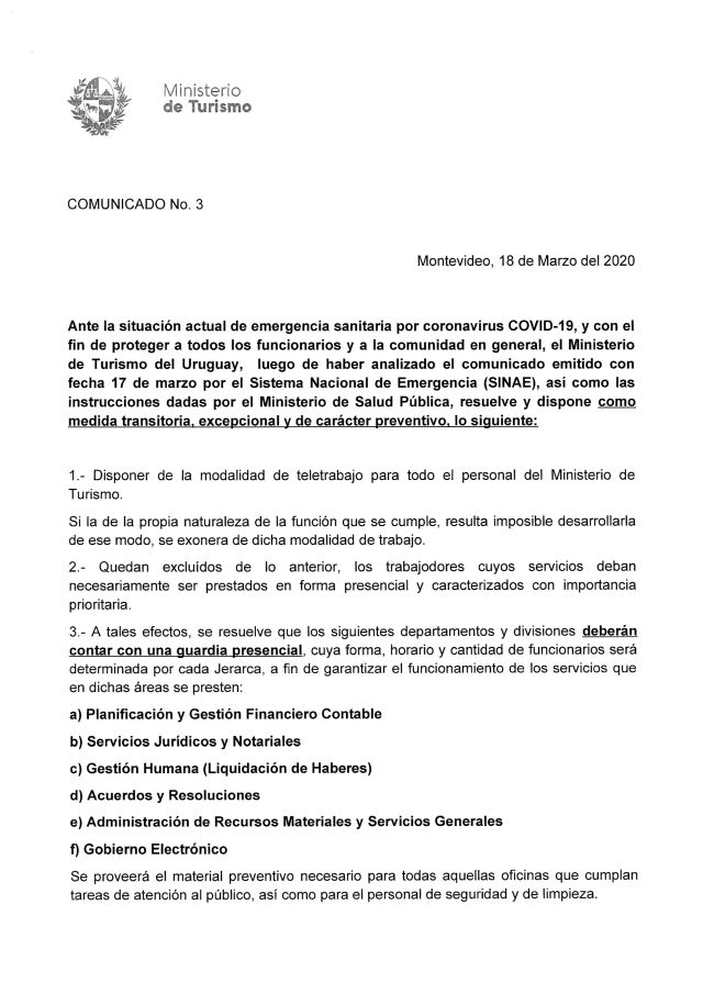 Exhortamos a quienes deban realizar trámites ante esta Secretaría de Estado a que lo hagan a través de nuestra página web: www.gub.uy/ministerio-turismo/tramites-y-servicios/tramites