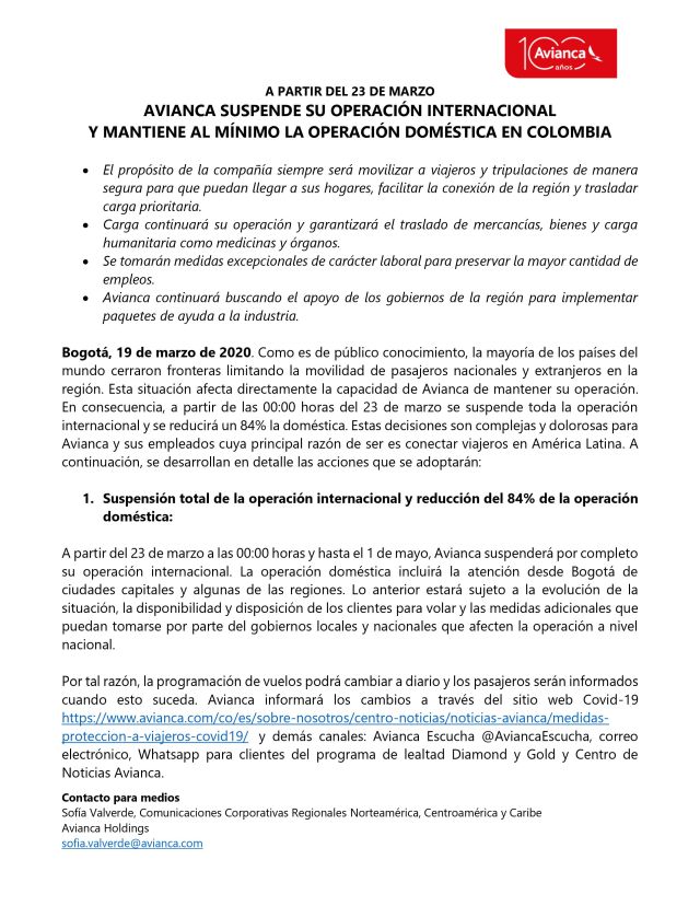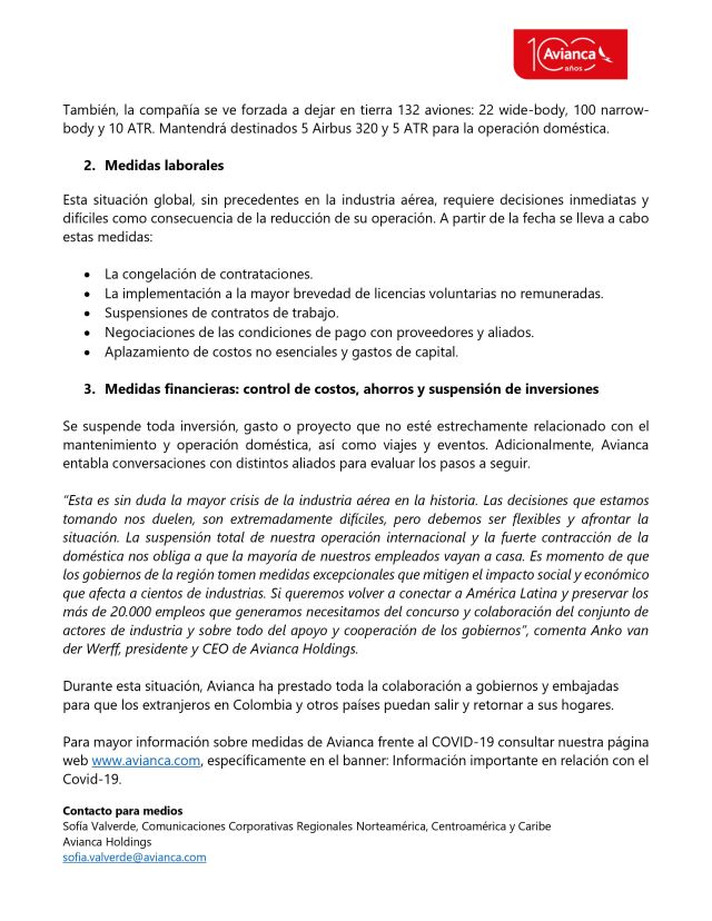 En este momento la compañía hará los anuncios respectivos, teniendo en cuenta que para los directivos se trata de la crisis histórica más grande que ha tenido la aviación mundial.