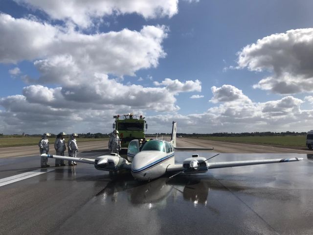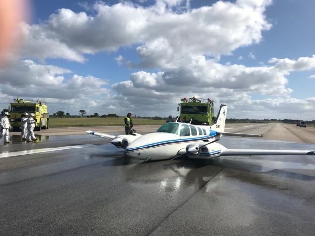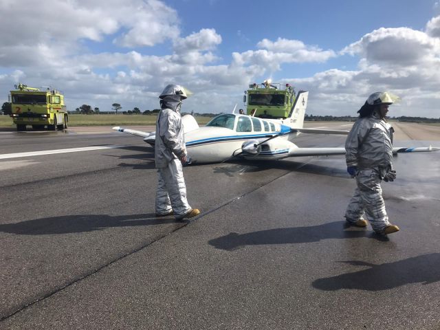 Efectuó el aterrizaje sin tren, no se produjo fuego, ni lesiones personales. El piloto salió por sus propios medios de la aeronave. Acudieron al lugar equipos de emergencia del Aeropuerto Internacional “Cesáreo L. Berisso.