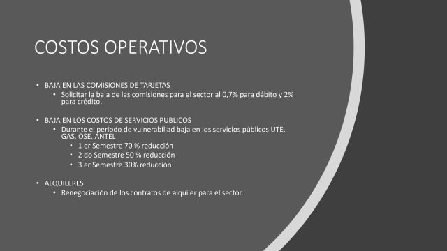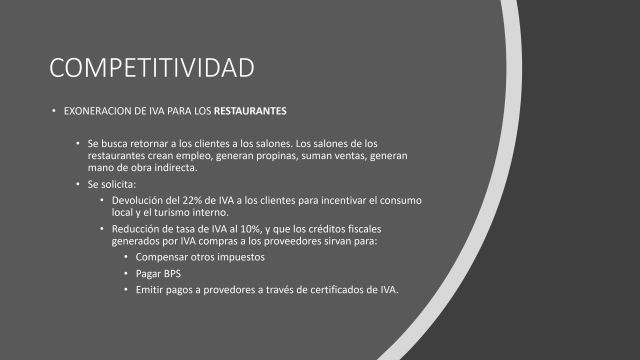 Un grupo de Gastronómicos orientados al TurIsmo confeccionaron una plataforma de reclamos a las autoridades. Finalmente, por la convocatoria lograda y la propuesta elaborada, dicha plataforma fue presentada a través de la Asociación de Hoteles y Restaurantes del Uruguay (AHRU) al Ministerio de Turismo y la Oficina de Planeamiento y Presupuesto. El sector está al borde del colapso luego de 2 meses sin ingresos y los compromisos financieros corriendo, sin tener ningun amparo por parte de las autoridades. Este es el documento.