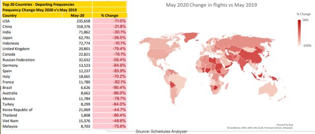A finales del mes de abril veíamos con alegría como el mercado doméstico en China comenzaba a alcanzar cifras arriba del 50%. La Consultoría Cirium, mencionaban que las cancelaciones continuaban siendo altas, pero la recuperación en los vuelos nacionales continuarán, siguiendo una tendencia a la pronta recuperación.