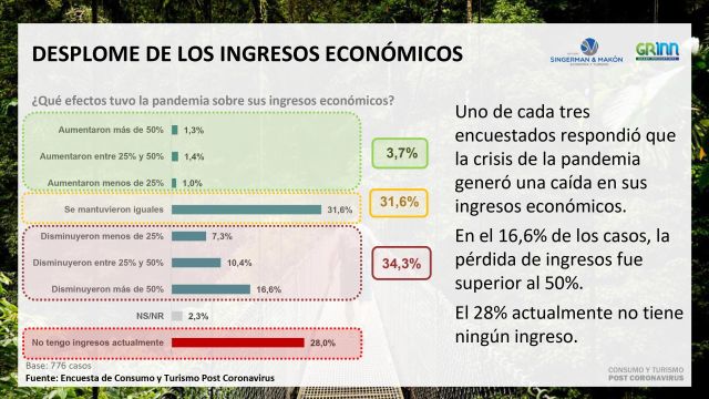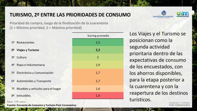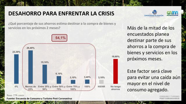 Este es el principal hallazgo que se desprende del estudio “Consumo y Turismo Post Coronavirus”, realizado por la firma costarricense GRINN Innovations junto a la consultora argentina Singerman & Makón, entre el 13 y el 29 de mayo pasados. Estas entrevistas, se realizaron a 776 personas mayores de 17 años en todo el territorio nacional