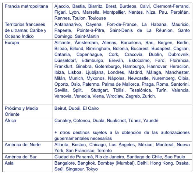Programa de vuelos Air France para julio y agosto de 2020 desde/hacia París