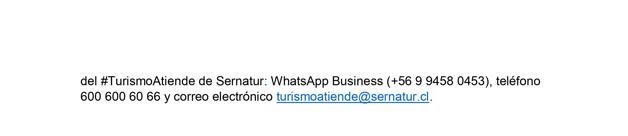 La directora nacional de Sernatur, Andrea Wolleter, destacó que “sabemos que el turismo pos pandemia será distinto y queremos que el Reactívate Turismo sea una oportunidad, un apoyo para que las empresas cuenten con recursos y puedan prepararse adecuada y oportunamente. Estamos trabajando de modo intersectorial en el sector público y colaborativamente con el sector privado, para prepararnos, equiparnos y estar listos cuando podamos volver”.