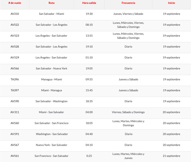 Avianca también informó que estos itinerarios están sujeto a cambios de origen, fecha y horario debido a las restricciones gubernamentales, e indicó que otros destinos se sumarán a la red de rutas en la medida en la que las operaciones aéreas se habiliten.