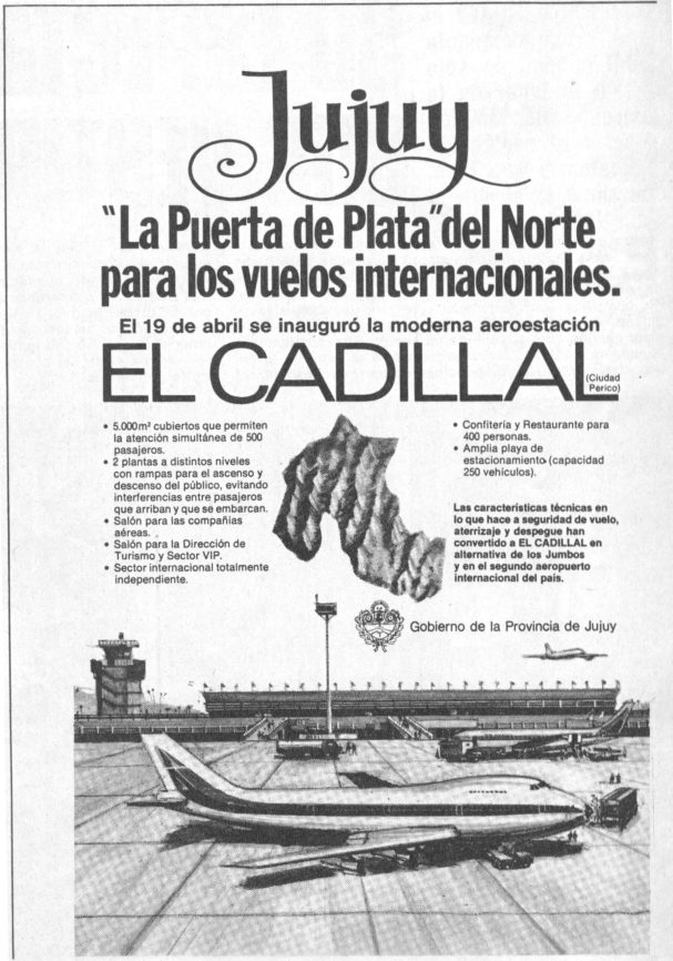 Publicidad en la revista Siete Días, 22 de abril de 1977, en ocasión de la inauguración del nuevo aeropuerto de Jujuy.