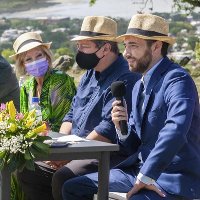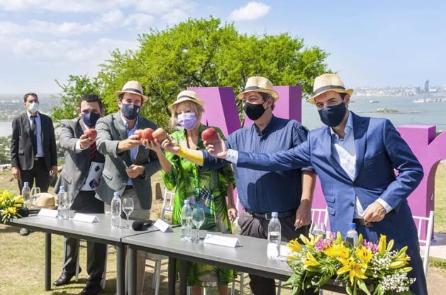 Con el marco de la vista panorámica que ilustra la nota, participaron en el evento el ministro de Turismo German Cardoso, la Intendenta de Montevideo Carolina Cosse, el Alcalde del Municipio A Jorge Meroni, y representantes de las organizaciones privadas del Turismo: por AHRU Agustin Maddocks , por la Cámara Uruguaya de Turismo Francisco Rodriguez, por el Grupo Centro Federico Celsi.