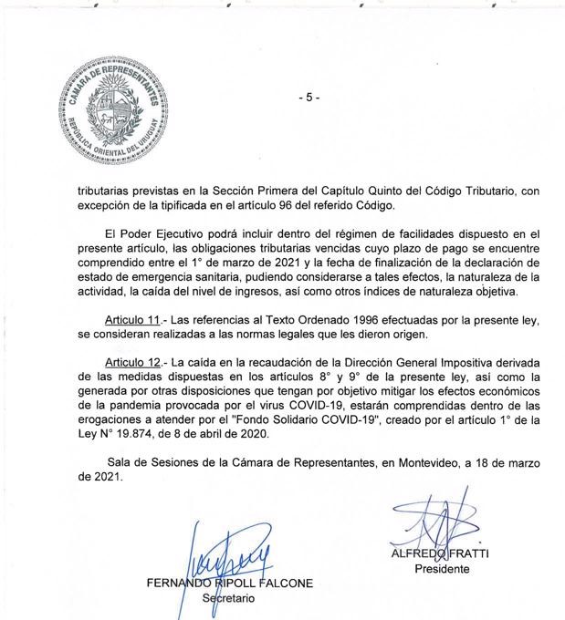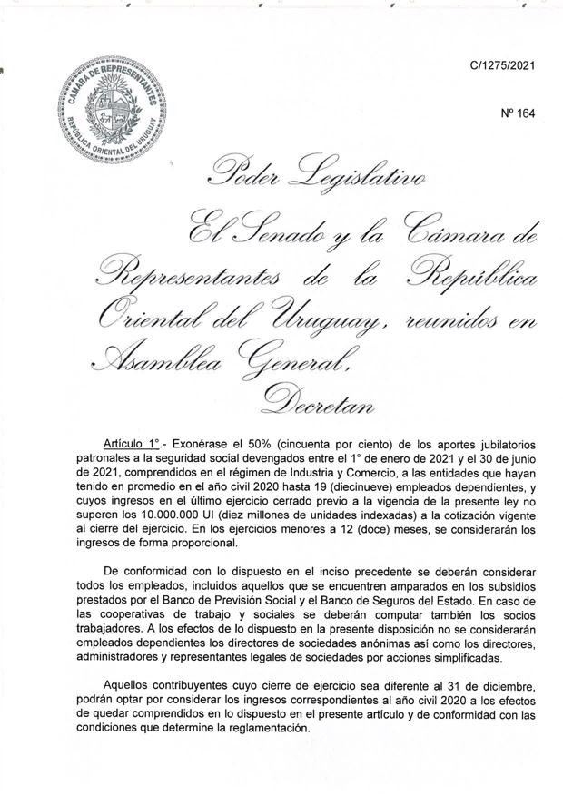 El Parlamento uruguayo aprobó la Ley remitida por el Gobierno Nacional que otorga exoneraciones y facilidades de pago previsionales y tributarios para Pymes.