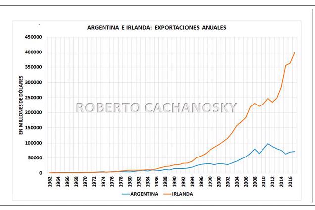 El ejemplo más contundente lo tenemos en Irlanda. Un país que era pobre y decidió integrarse al mundo a fines de la década del 80. Eso le exigió hacer una serie de reformas estructurales que hoy le permiten exportar USD 400.000 millones al año.
