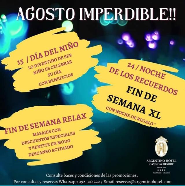 Como todos los meses, el Argentino Hotel de Piriápolis ofrece actividades para todas las edades, pudiéndose disfrutar de las mismas solos, en pareja, en familia, o grupos de amigos. Pero para ello, se deben realizar las reservaciones con tiempo, pues los protocolos sanitarios requieren preparación y limitan los cupos.