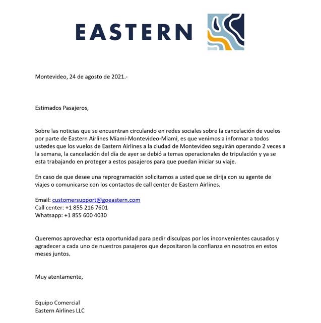 Debido a versiones que indicaban la cancelación de la operación, la aerolínea estadounidense hizo llegar a nuestra redacción el siguiente comunicado.