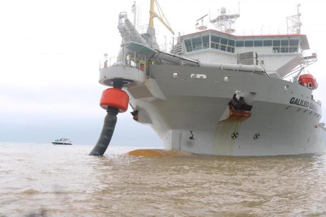 La obra la realiza Jan de Nul Group, líder mundial en obras de infraestructura marítima, dragado, ingeniería civil y medio ambiente, y emplea numerosas retroexcavadoras y palas mecánicas, más una mega draga, el buque Galileo Galilei.