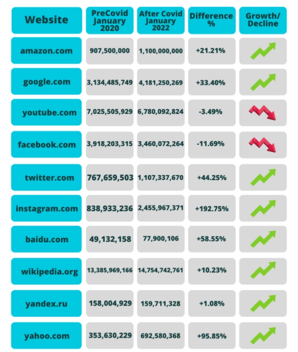 Además de descubrir cuáles son las webs claves en el sector turístico, el estudio también ha estudiado cuál es el top 10 de las páginas más visitadas en todo el mundo. Mediante un vistazo a la tabla, comprobamos que las grandes compañías como Amazon y Google siguen reinando. Es más, su poder ha crecido.