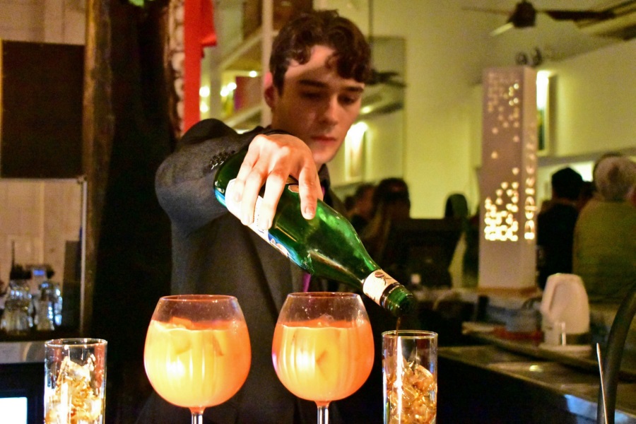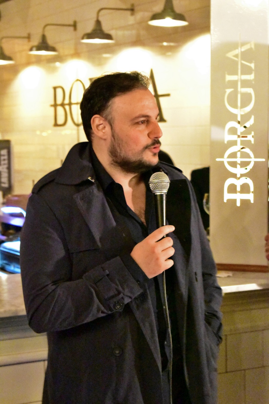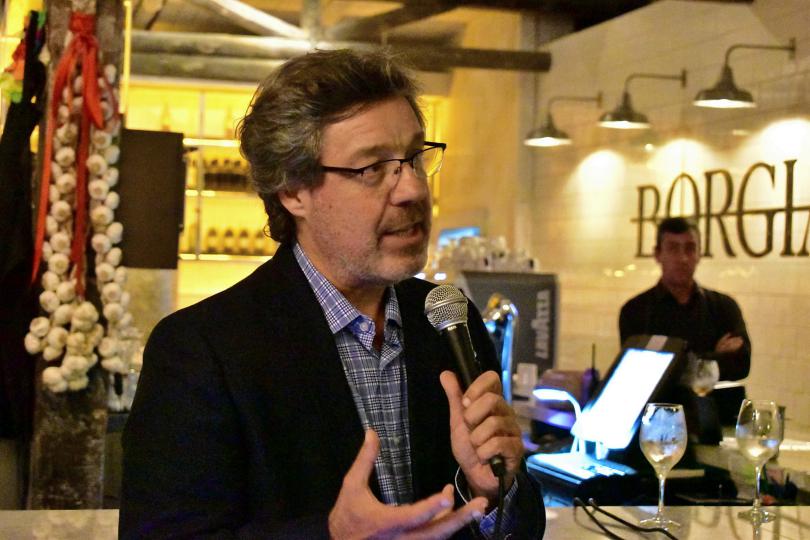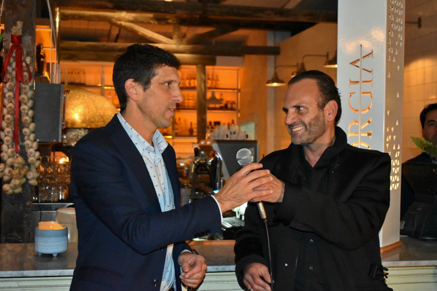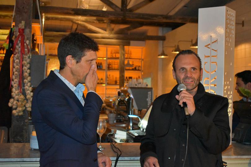 Marcos Grolero junto a Diego Rippel, propietario del Restó Borgia cuando el anfitrión daba la bienvenida a los presentes