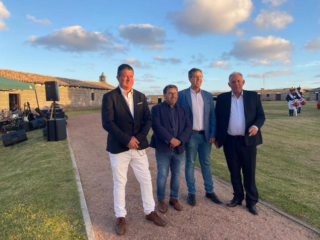 Director General de Secretaría del Mintur, Ignacio Curbelo; Gerente General de Solanas, Alejandro D’Elía; el colega Daniel López y el Director Nacional de Turismo Roque Baudean en el brindis de la Fortaleza de Santa Teresa.