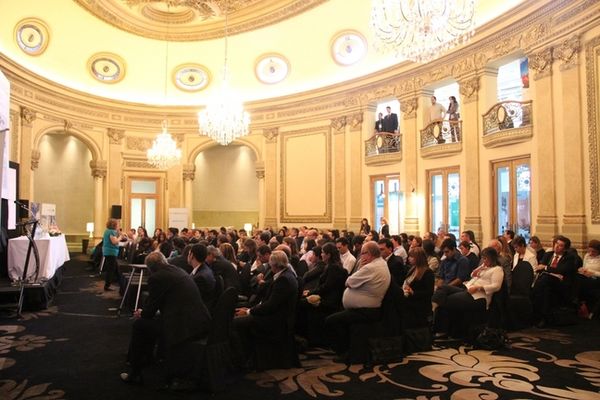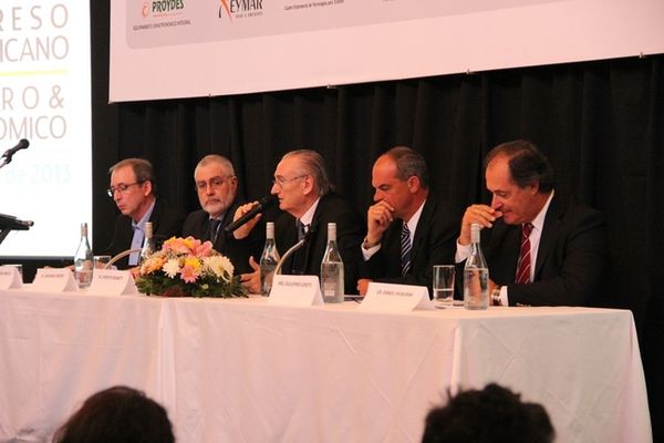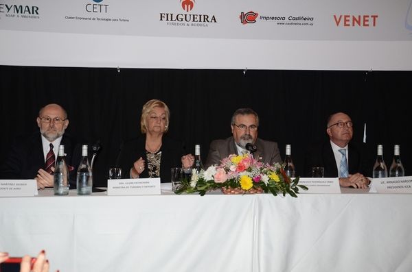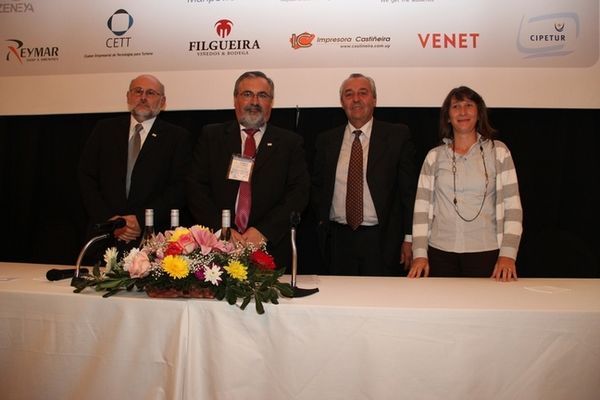 De izq. a der. Secretario del Comité Organizador, Manuel Pérez Bravo; Director Nacional de Turismo, Benjamín Liberoff; Gerente Uruguay XXI, Roberto Bennett; de la COMAP, Cr. Daniel Sylburski y del Minturd, el Arq. Guillermo Ceretti, en el panel del Rol del estado en el sector.