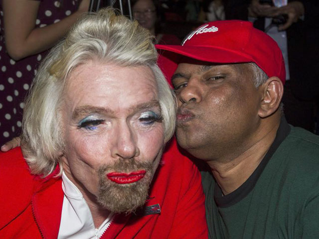 Hace tres años, Branson y Fernandes mantuvieron una discusión acerca de qué equipo terminaría más arriba en el Campeonato de Fórmula 1: Virgin Racing o Lotus Racing. El primero, propiedad de Branson, acabó por debajo, por lo que el magnate admitió la derrota y tuvo que oficiar de azafata en la aerolínea competidora.