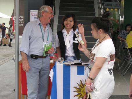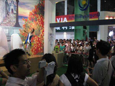 La mayoría de los visitantes son chinos, con los cuales lo único que podemos pretender es que algunos retengan en su memoria que existe un país en Sudamérica llamado Uruguay. El futbol nos ayuda, por ejemplo los guardias de seguridad saben que el otro día jugamos con Francia, pero no hay que pretender más que una remota referencia.