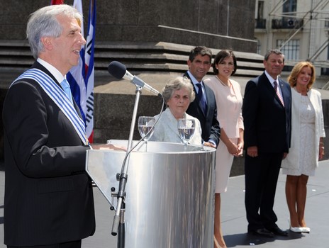 El protocolo tuvo inicio en el Palacio Legisltaivo donde Vázquez prestó su juramento y pronunció un discurso basado en la evocación “con respeto y admiración” a José Grvasio Artigas.
