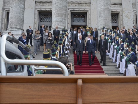 Tras prestar juramento ante la Asamblea General, el Presidente de la República, Tabaré Vázquez, mantuvo por espacio de cinco minutos una primera reunión con la Presidenta de Brasil, Dilma Rousseff.