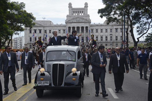 Subieron a un Fordson de 1951 de color gris, en el que se dirigieron a la Plaza Independencia por la Avenida del Libertador Brigadier General Juan Antonio Lavalleja, escoltados por el Regimiento de Blandengues de Caballería Nº 1. Según la tradición, el recorrido se realizó en una camioneta abierta, con la finalidad de que la ciudadanía tenga mayor contacto visual con el Presidente y vicepresidente.