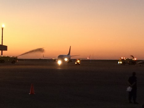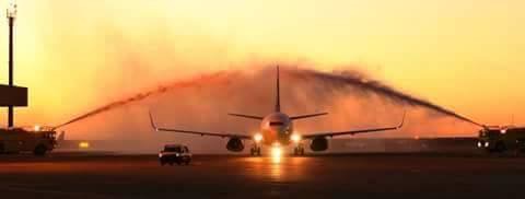 La emoción generada por la aparición del Boeing 737-300 reflejada en el agitar de banderas