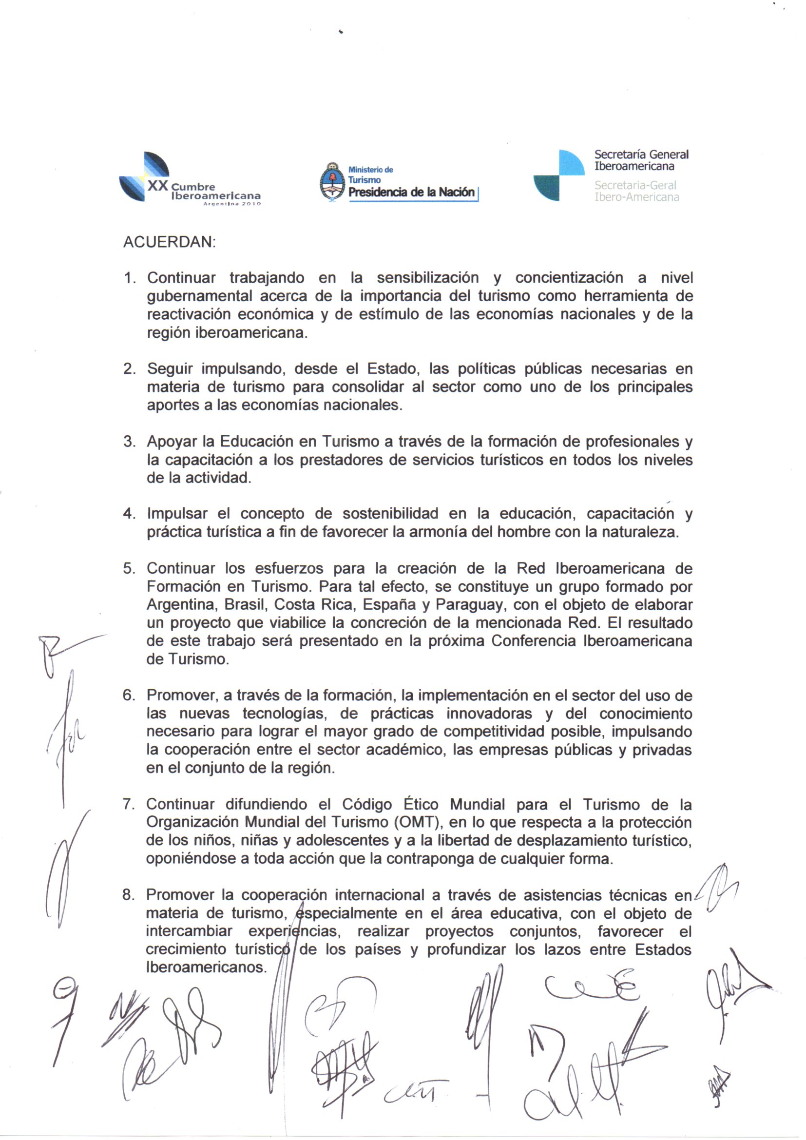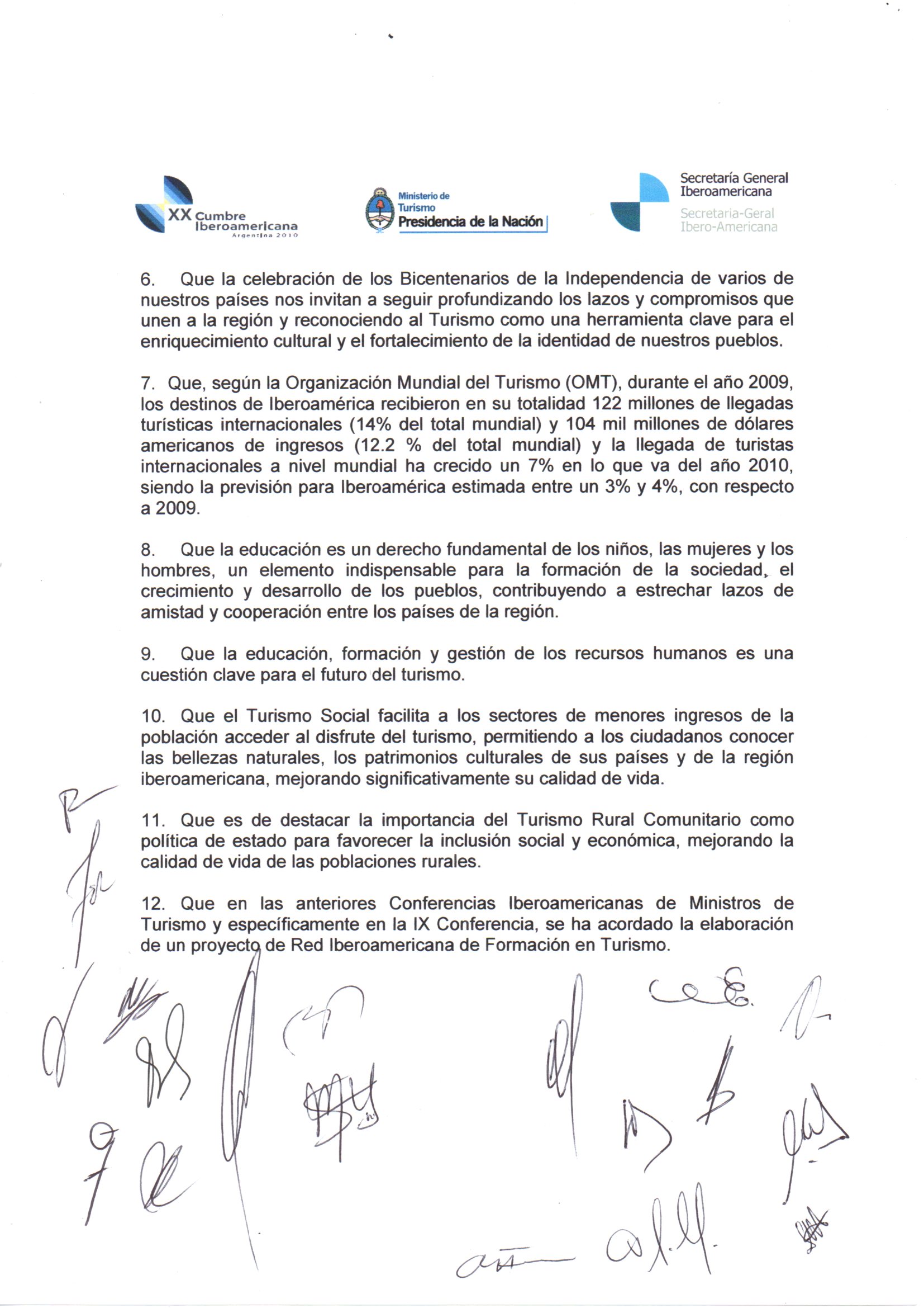 Con motivo de la X Conferencia Iberoamericana de Ministros de Turismo "Turismo, Educación e Inclusión Social", celebrada los pasados días 2 y 3 de setiembre en la ciudad de Córdoba, Argentina, en el marco de la XX Cumbre de Jefes de Estado y de Gobierno, que se realizará los días 3 y 4 de diciembre próximos en Mar del Plata, las Ministras, Ministros y Altas Autoridades del Turismo, emitieron los documentos que reproducimos en la galería de imágenes al pie de este artículo.