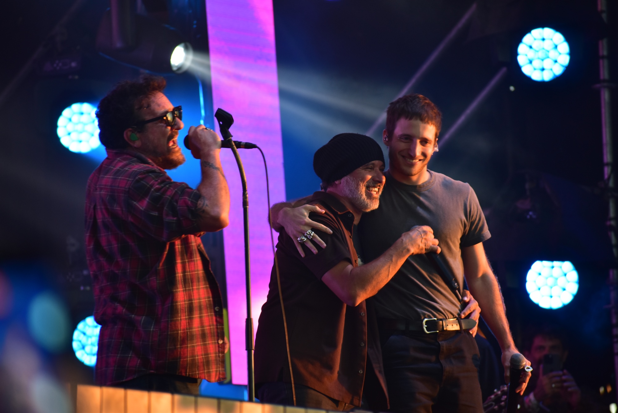 El punto de quiebre absoluto del festival ocurrió cuando Sebastián Teysera anunció a un invitado que nadie quería perderse. WOS, saltó a las tablas para fundirse en un abrazo con el Enano y el Cebolla.