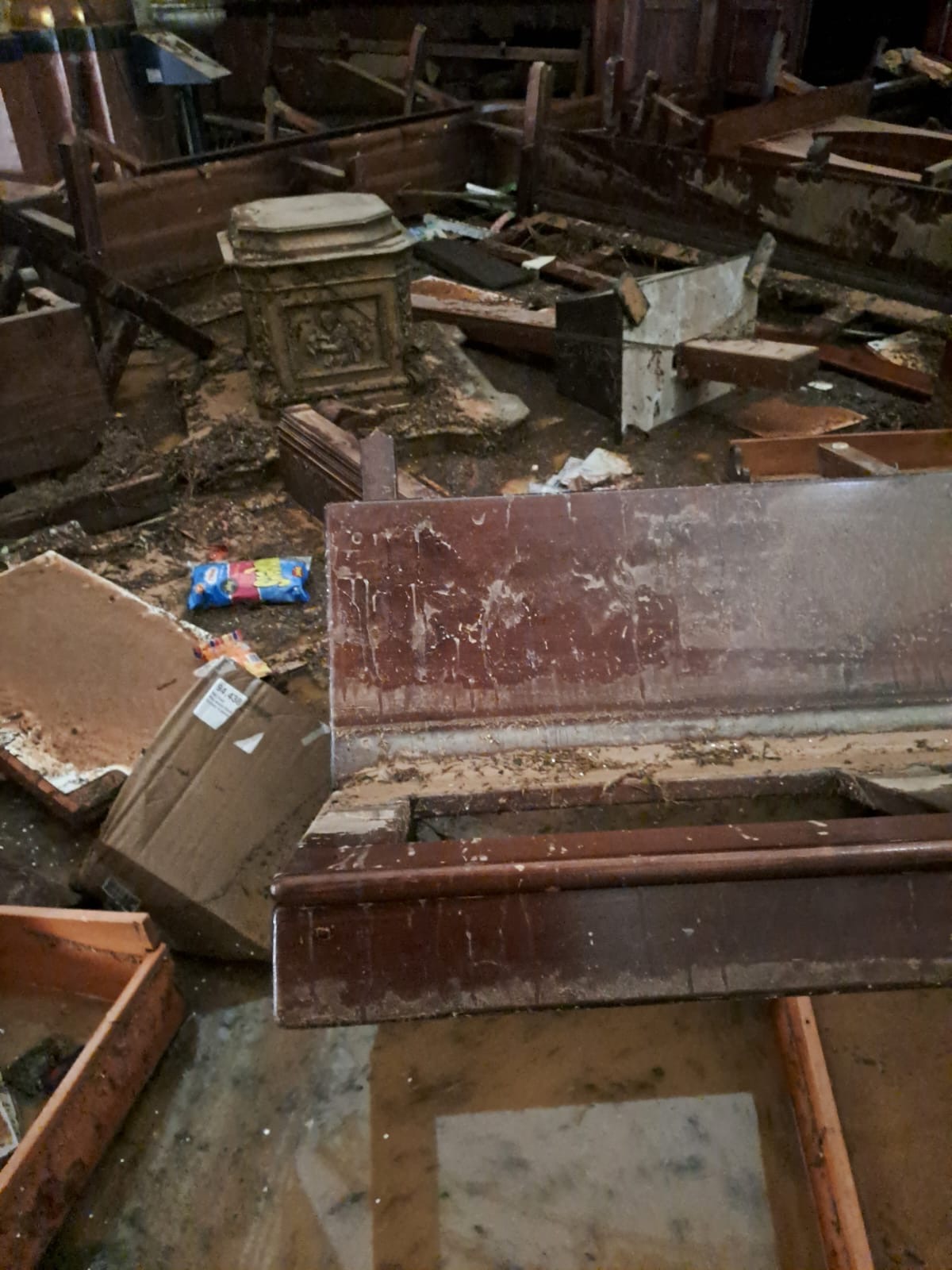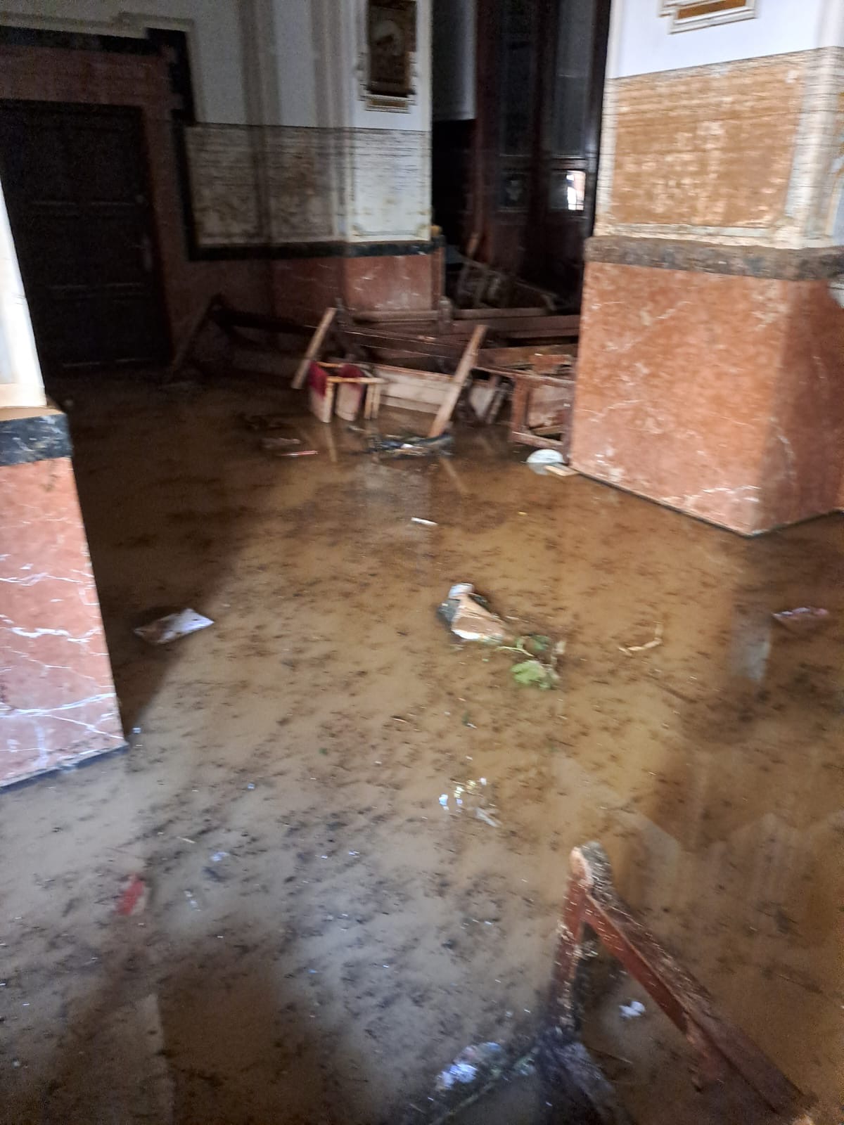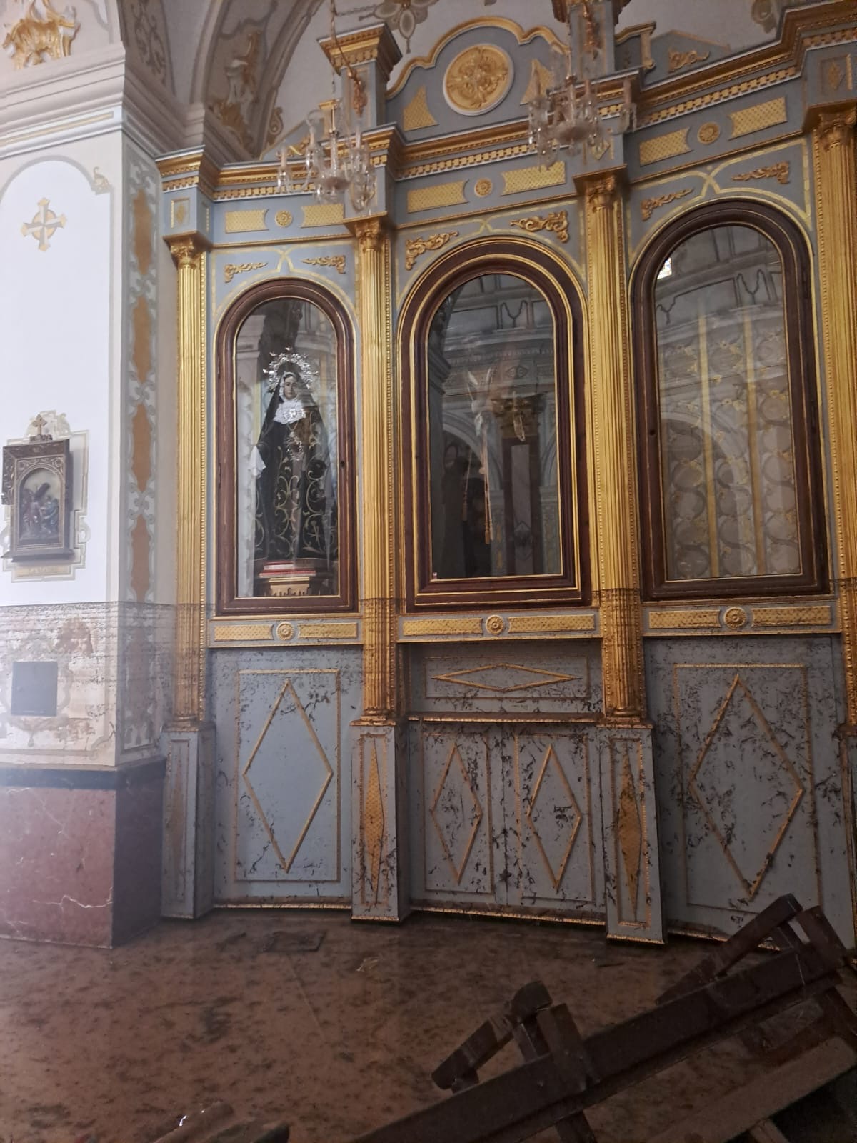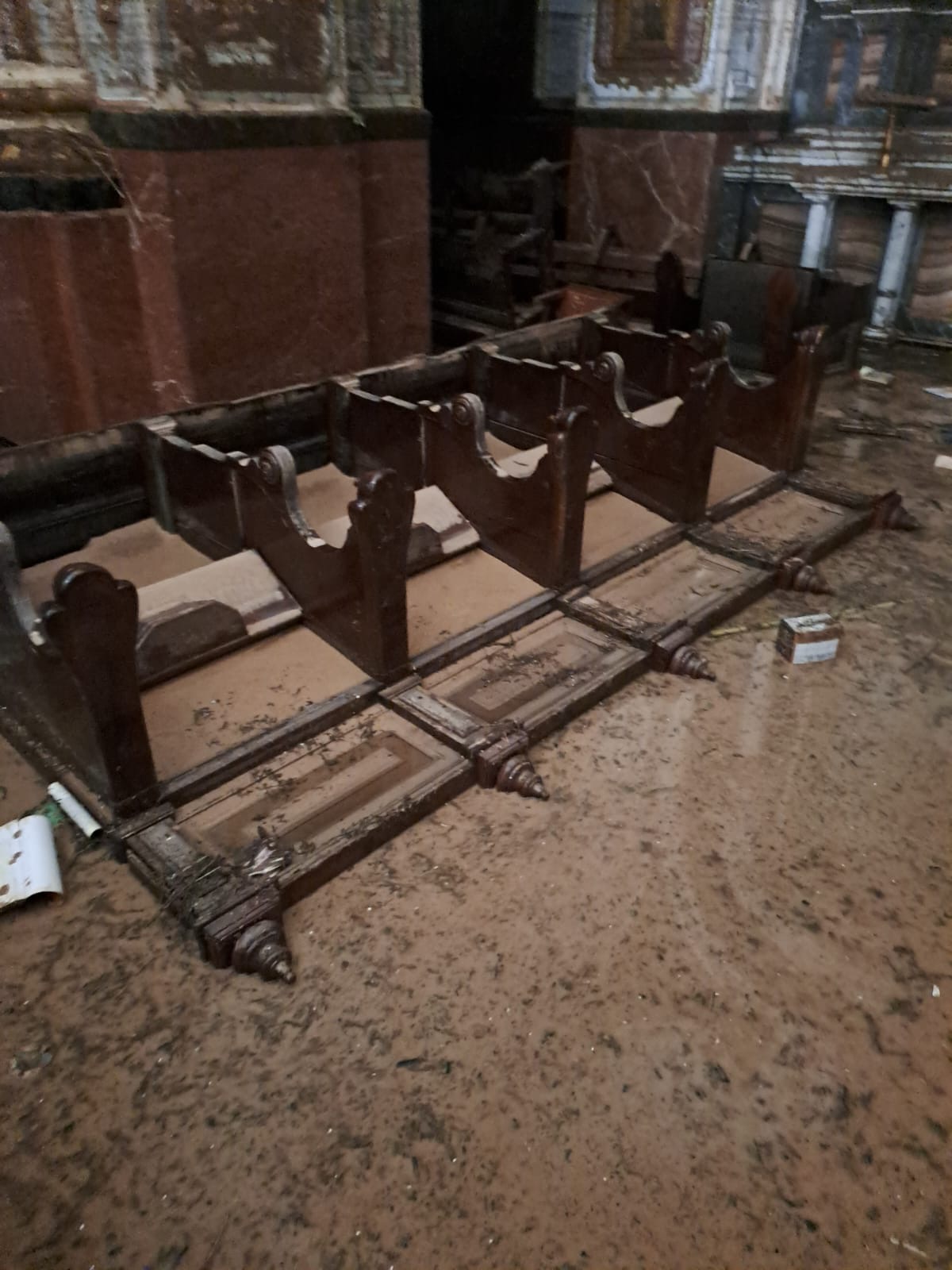 La devastación es inimaginable, la ciudad semi destruida, la gente aislada, sin agua, sin luz, sin alimentos, con 45 fallecidos según la Alcaldía y un número no determinado de desaparecidos, y algo que nos impactó como contra cara de lo que vivimos en Torremolinos de admirar el Arte Sacro, la Parroquia de San Jorge Mártir arrasada por la DANA, justamente una de las Parroquias que atiende el Padre Gustavo Riveiro, con el cual nos comunicamos con serios problemas técnicos, pero logró enviarnos unas fotos que nos entristecen.