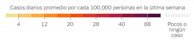 Recorridas las presentaciones gráficas del P7, nos pareció interesante la empleada por el New York Times. A los clásicos colores verde (de 0 a 1), amarillo (1 a 10) y naranja (10 a 25), se pone límite superior al color rojo (25 a 50), agregándose el marrón (50 a 68) y negro (mayor a 68).