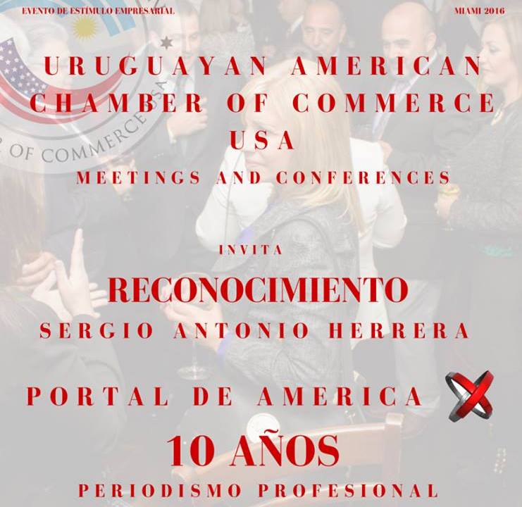 La UACOC, Uruguayan American Chamber of Commerce, entidad que agrupa a empresarios uruguayos radicados en esa ciudad, ha tenido la gentileza de invitarme a un evento organizado para el próximo 23 de junio que han titulado "Reconocimiento a Sergio Antonio Herrera, Portal de América, 10 años de periodismo profesional" durante el cual además, daré una charla relacionada al turismo y a la aviación comercial.