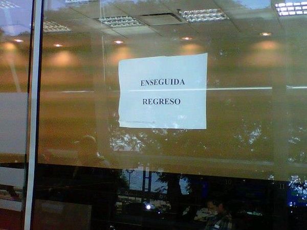 Cuando llegué tenía este cartelito. Esperé un rato, pero si me quedaba ahí perdía el vuelo, así que desistí de que me devolvieran el IVA.