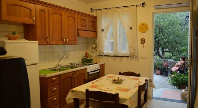 Siguiendo nuestra línea de categoría de alojamientos que hemos adoptado para este viaje, podemos asegurar que hasta el momento es el lugar más amplio, más completo y mejor equipado de todos los que tuvimos hasta ahora. Es una sala-cocina-comedor, más dos habitaciones, un baño completo (hasta con bidet) y una terraza con una vista al Tirreno de película.