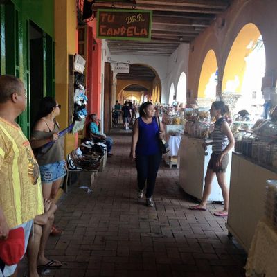 Ya en tierra cambia radicalmente la visión al entrar en contacto con el casco histórico y su gente. Aquí, en una pasiva que además de de sombra ofrece una impresionante variedad de dulces.