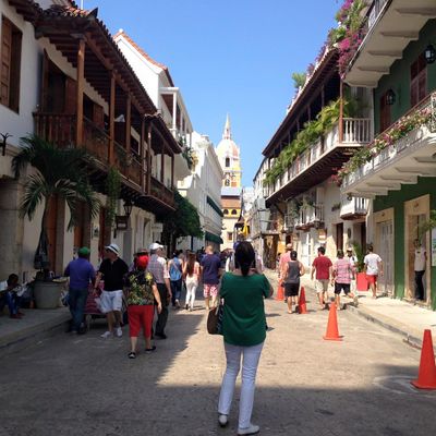 Se realiza en primera instancia una caminata guiada por la ciudad amurallada (aunque la guía prefiere decir "abaluartada") para ver: Torre del reloj, Plaza de Santo Domingo, Plaza de la Aduana, Plaza Bolívar, Palacio de la Inquisición, Museo del oro y una parada con un chopp bien helado de cortesía en el Hard Rock Café y otra de compras de artesanías y esmeraldas.