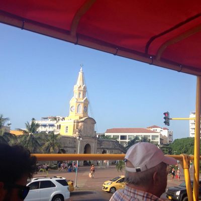 Desde el puerto, fuimos transportados en un catamarán a través de la bahía cartagenera hacia el sector antiguo de la ciudad que ya en primera instancia muestra el gran contraste de lo antiguo y lo moderno. La vista desde el barco no tiene mucha diferencia a lo que se ve al llegar a Panamá e inclusive Miami, una costa en donde emergen importantes torres habitacionales.