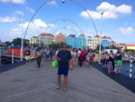 Al descender del barco lo primero que hicimos fue atravesar el puente de barcas de la Reina Emma de cuatro carriles, sobre la Bahía de Santa Ana en Willemstad, capital de Curaçao, en las antiguas Antillas Neerlandesas, de ese modo cruzamos desde el barrio de Otrobanda al de Punda. Recibe su nombre de la Reina Emma, tiene aberturas para permitir el tráfico de barcos de gran tonelaje