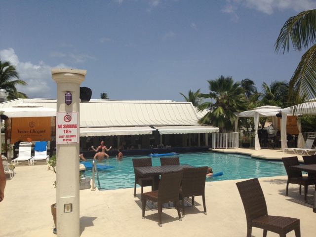 Acertaron, la taxista se salió con la suya y terminamos en Royal Beach, pagando dos dólares la entrada cada uno con derecho al uso de los baños y a la piscina. En caso de haber pagado el servicio cada reposera costaba 10 dólares y la sombrilla quince Pero al igual que nos pasó en Curacao hace unos meses nadie vino a cobrar y nosotros no salimos a buscar a nadie tampoco... Un Mojito, Margarita o Caipiroska costaba nueve dólares y una cerveza cinco, un Club Sandwich catorce.