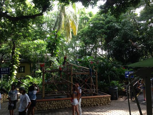"Luego de la casa amarilla aquella están los taxis" nos dijo un funcionario local. En la casa amarilla funciona el obligatorio Free Shop de estos lugares y dentro del agobiante calor es una contundente invitación a quedarse por el confortable aire acondicionado y la variada gama de productos, pero decididos atravesamos el lugar y nos encontramos -antes de los taxis- con un esplendoroso jardín de gran vegetación en el que se destacaban coloridos papagayos (o algo por el estilo) y unos incréibles pavos reales (o parientes directos).